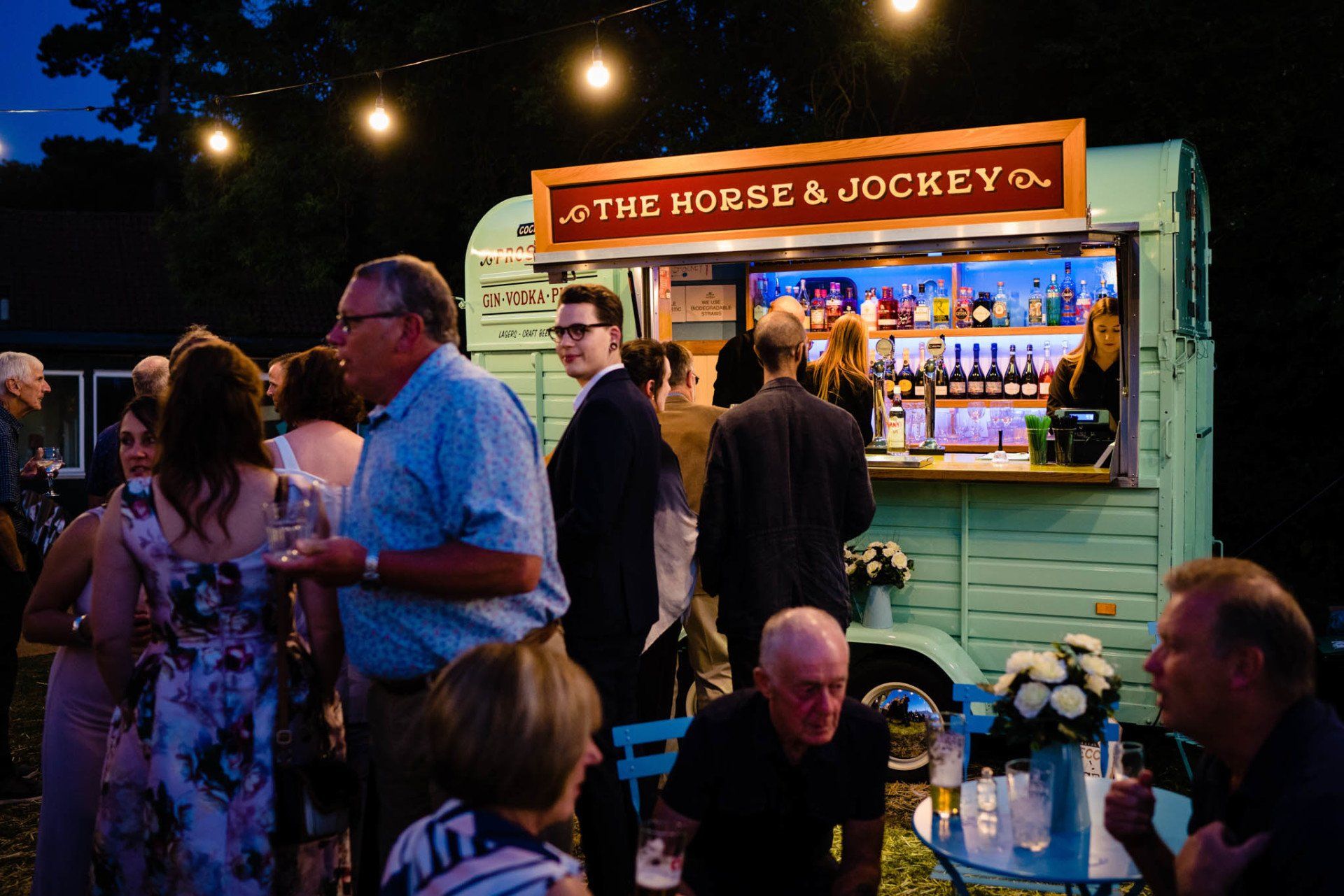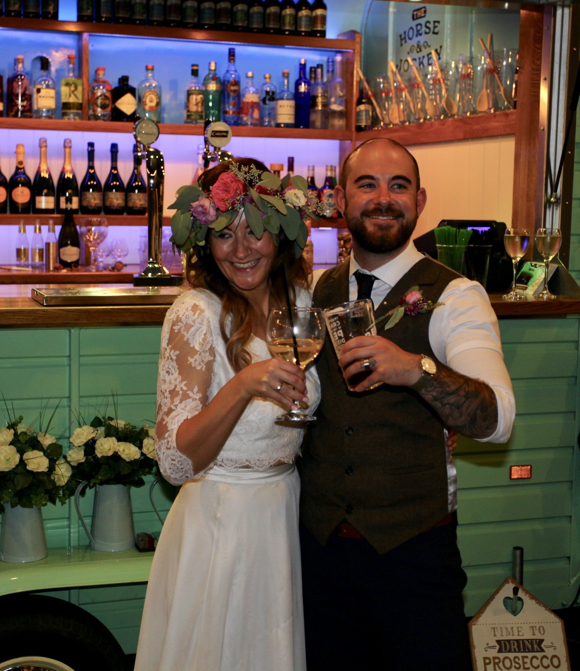 ‘We booked the Horse & Jockey for our wedding weekend celebrations. They were so easy to deal with from start to finish it meant there was one less thing for us to worry about! The vintage horse trailer looked fantastic in our garden alongside the yurts from Yurtmaker and the live music. Not only did the Horse & Jockey provide the bar but also the majority of the seating for our guests which also looked great. The drinks menu was completely tailored to our event and we were able to request all of our guests favourite drinks! The service from the team was friendly, efficient and professional and all the guests raved about the large drinks selection that was available. We absolutely loved having the Horse & Jockey as a part of our wedding weekend and wouldn’t hesitate to recommend them to anyone. We will definitely be using them again in the future!’